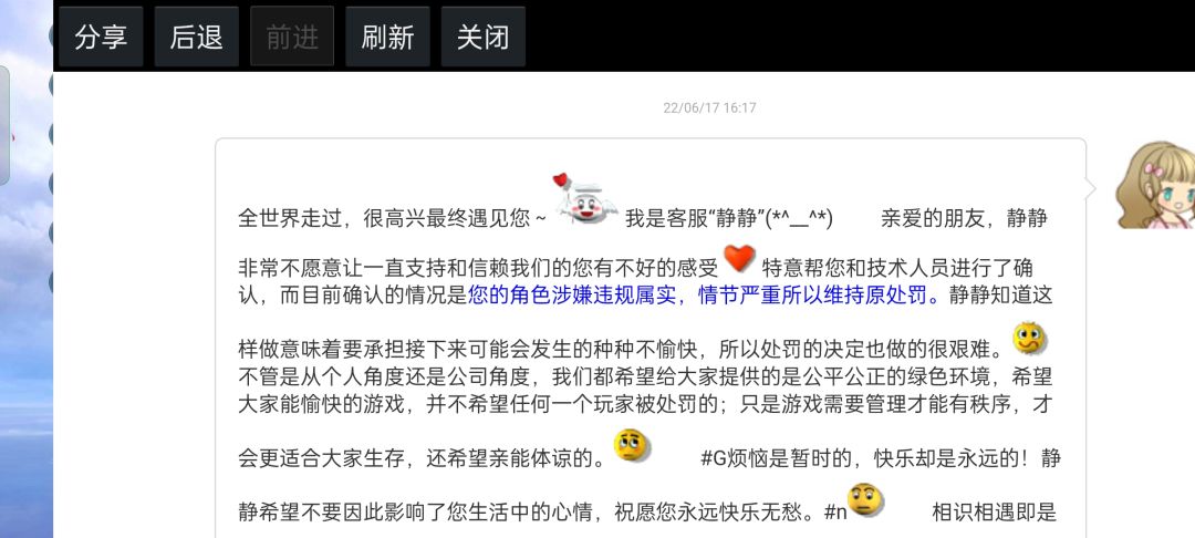 我真的服了,游戏给我封号也不说明具体情况,就说一个游戏异常。 电话去问也说需要后台查看 现在就给我永久封号 真的是无语了 有这么坑玩家的吗 你说违法违了什么 拉出来表明啊 什么也不说 那我冲的钱白冲啊 当傻子 大号小号都封理由也不说 后台回复就这样
