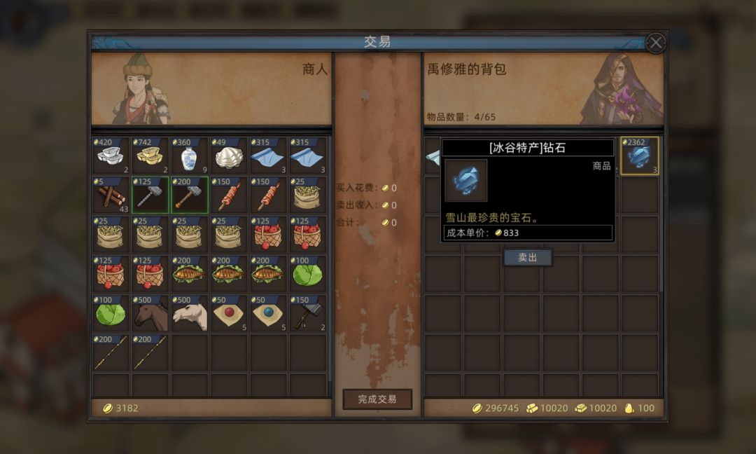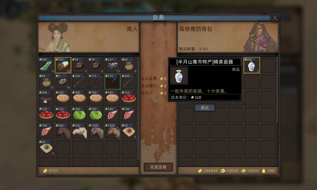 而我到了沙漠里的驼铃集市在卖出售价就变成了666,虽然就进了两件货,但我这波赚了500块左右,你可以想象你一次弄几十上百货的利润,后期他店里没钱就用他店里的特产抵钱,