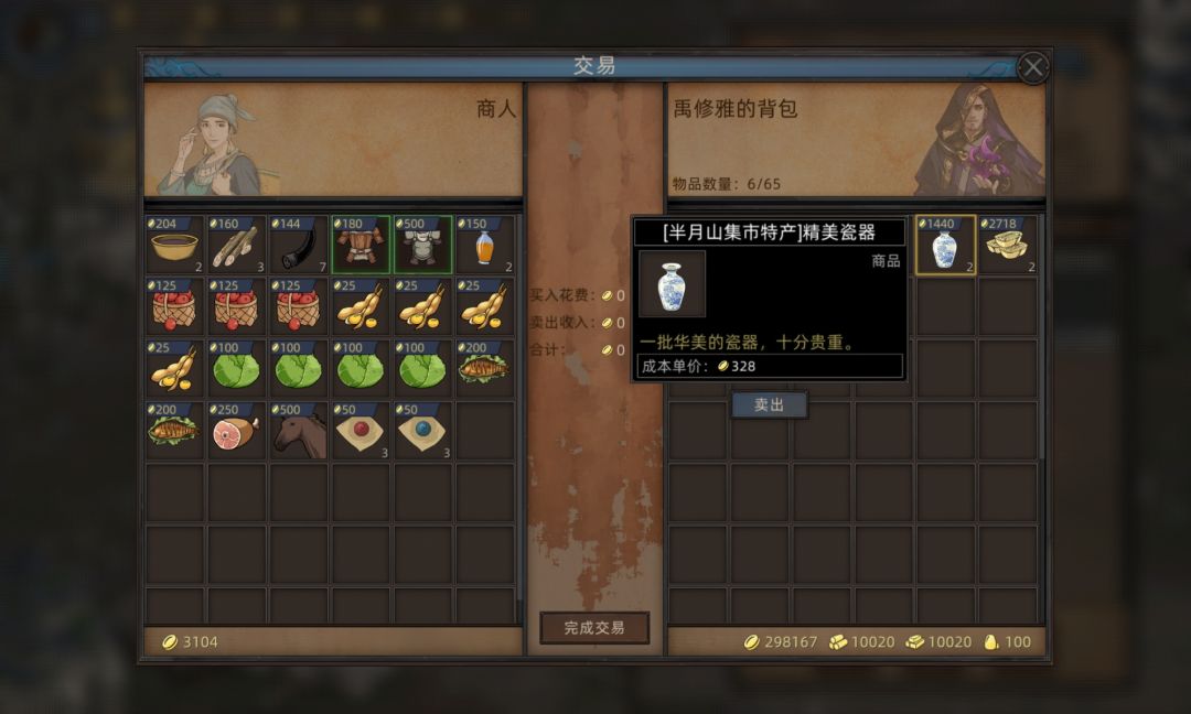 前期一段时间以后,声望优先选经商可以加百分之30出售价格