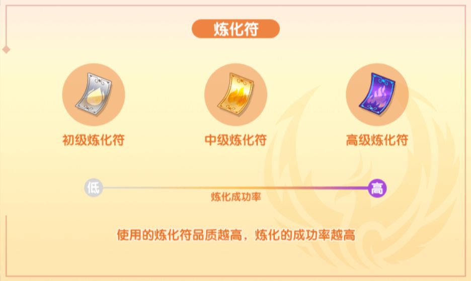 炼化当然少不了炼化符,等级越高的炼化符效果越好~,馆长可一步步炼化至最高等级!