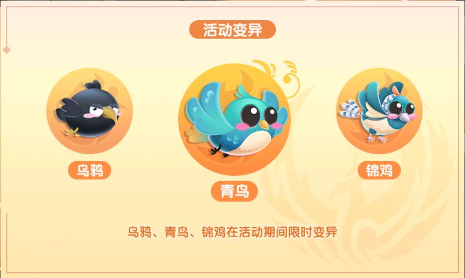 注意:乌鸦、青鸟、锦鸡在活动期间限时变异
