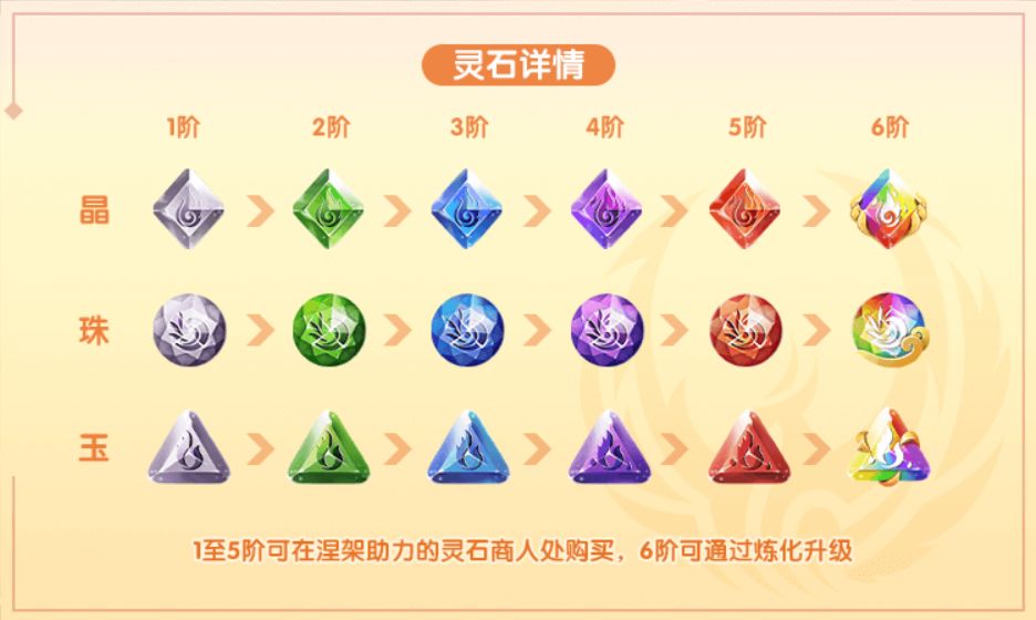 灵石获取渠道:灵石商人(1-5阶)、涅槃礼包、涅槃商店(5-6阶)