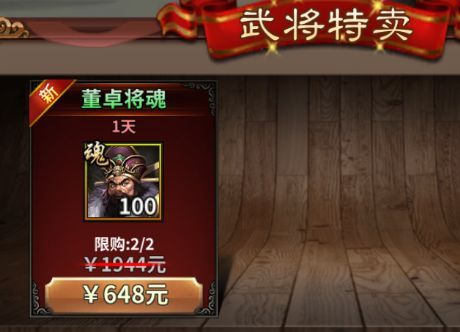 武将特卖:和寻宝系统一样的,每三天更换一次武将。