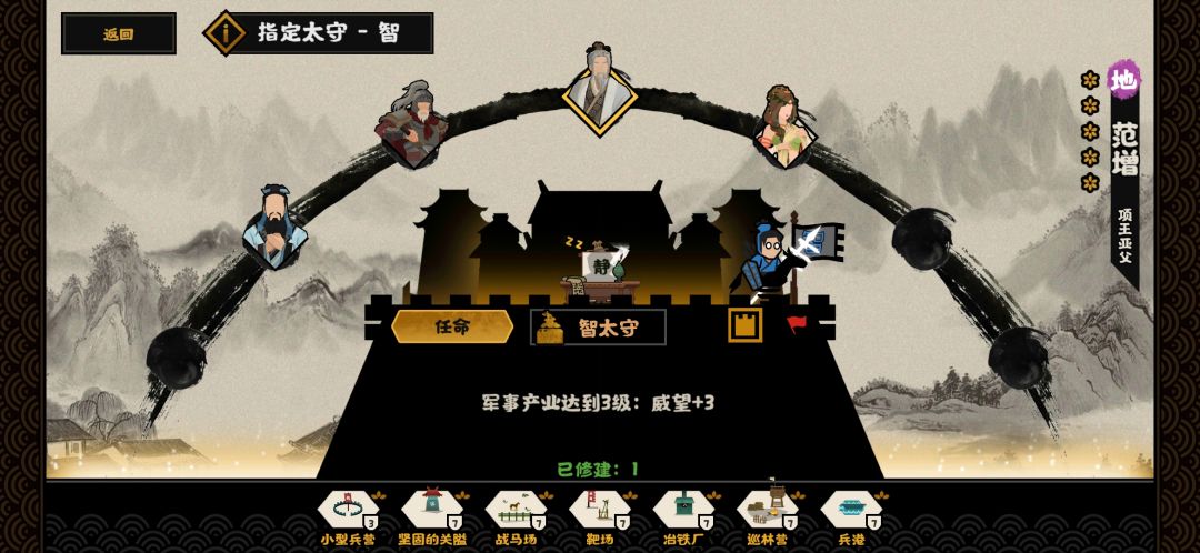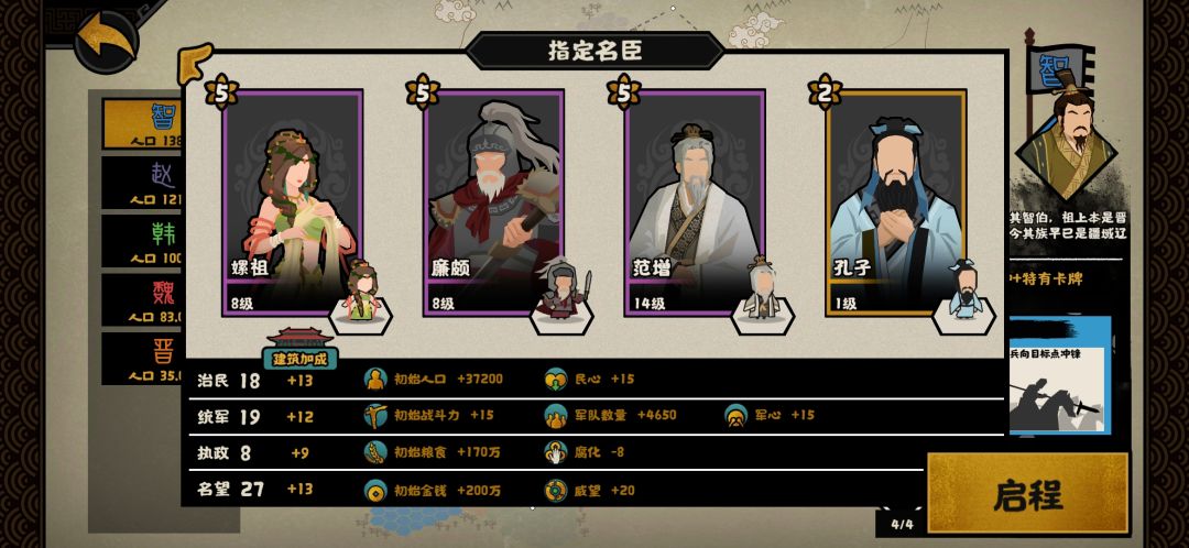 1.选择智国,配置名臣