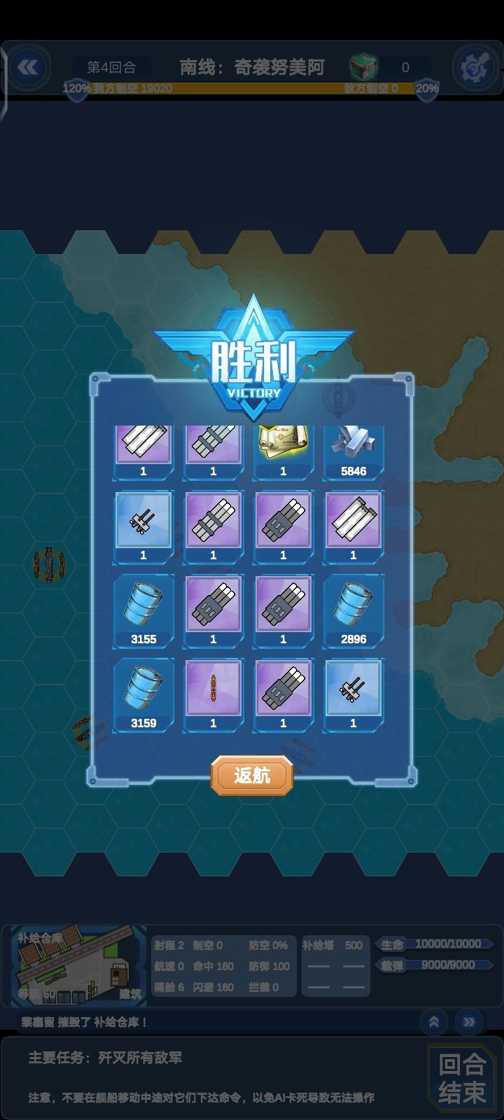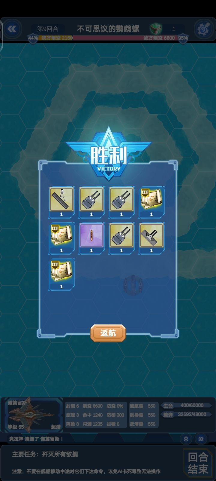 注意本关的大巡和后面来增援的导驱,对我方舰队威胁很大,一定要第一时间处理,还有新出的两艘轻航(纽伦堡和莱比锡)对地对海都挺不错的,还可以用来欺负6-4烈阳的机群