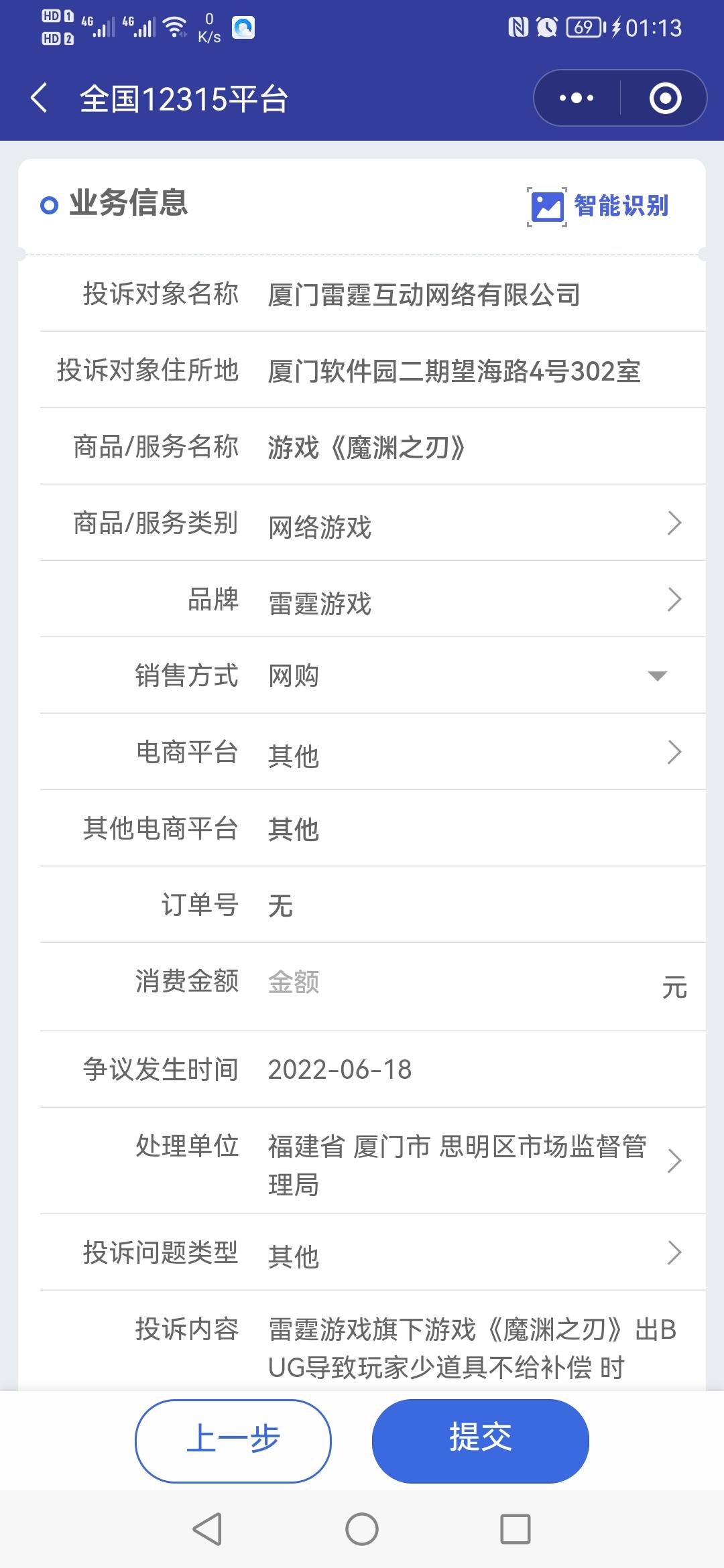 投诉教学 先去微信小程序搜索:12315-点击【我要投诉】-【同意】,然后地址选全国,输入游戏公司名字:厦门雷霆互动网络有限公司
