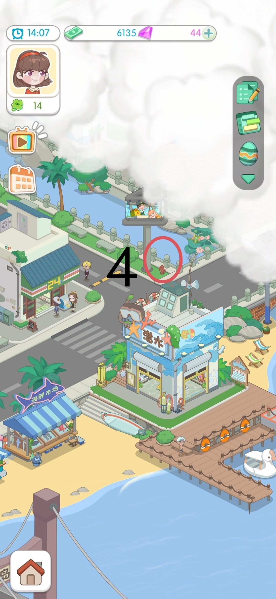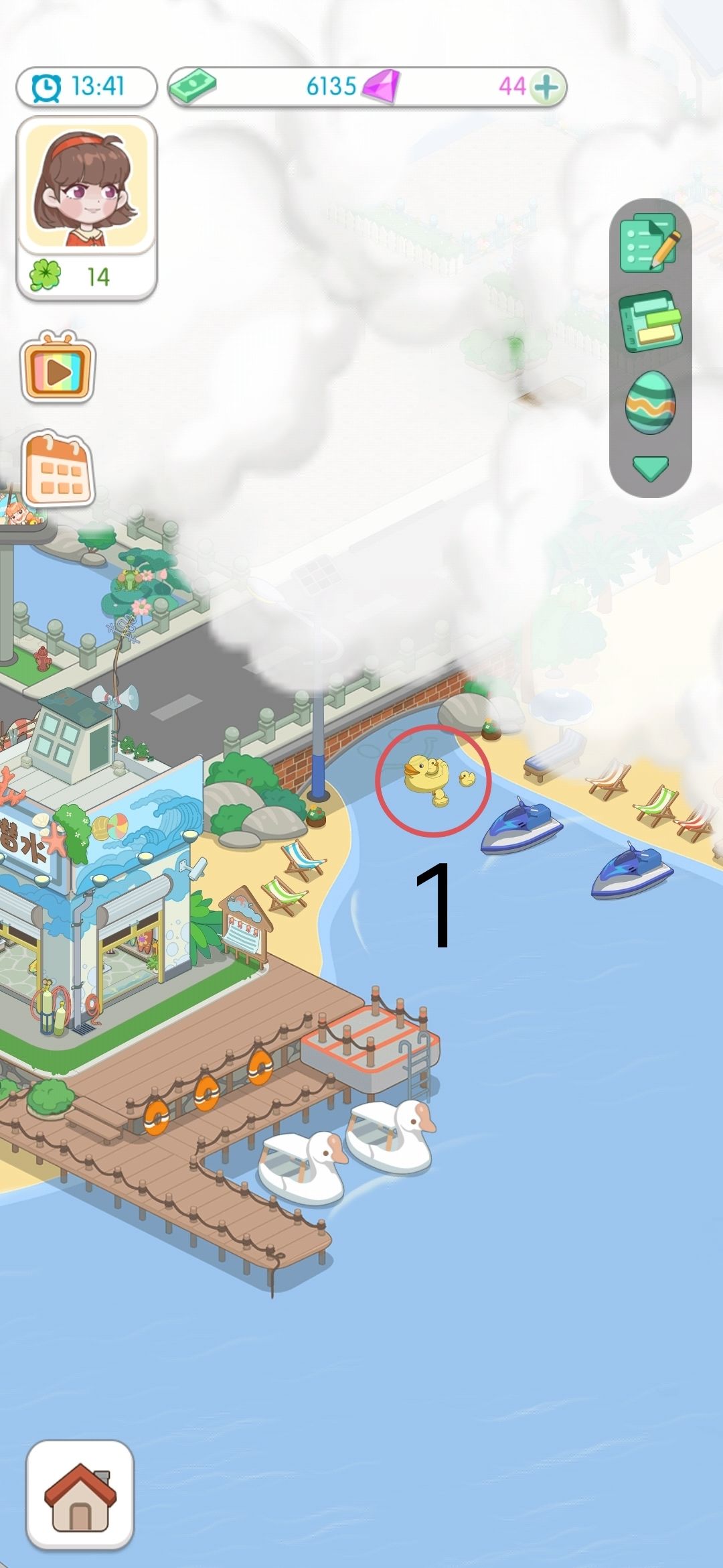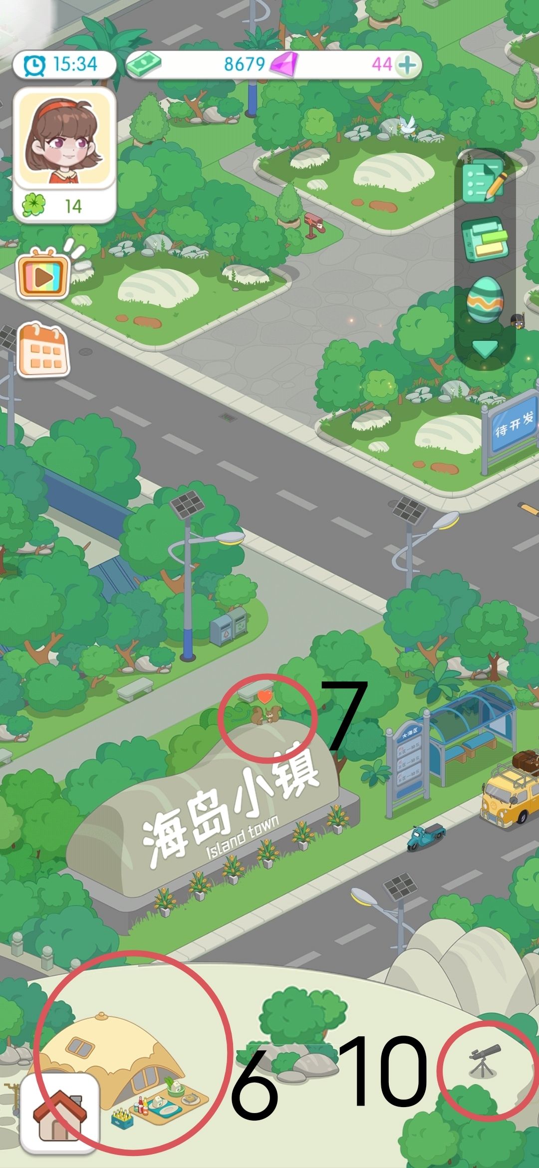 7、松鼠(写着海岛小镇的石头上有两只松鼠,点一下会有爱心)