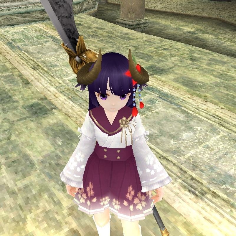 可恶,追加为什么不能同时用四个呢!飞翼披风牛角丝巾樱花发饰四个一起用就能接近想象的效果了!
