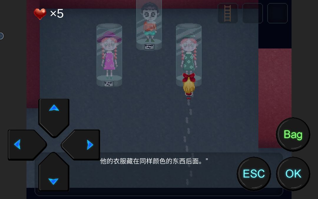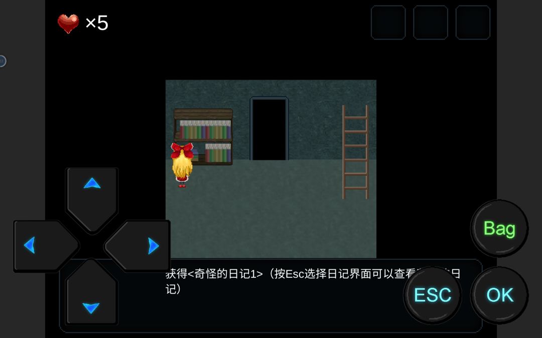 然后回到1楼跟着脚印来到一个房间,获得梯子。旁边的书架获得日记1
