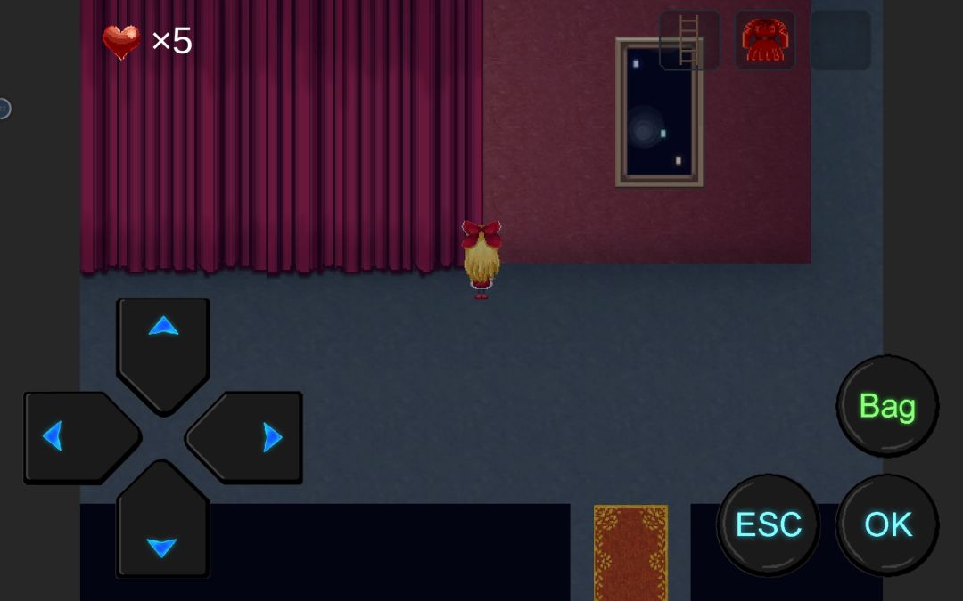 把人偶放在展示台上后下楼来到一楼,调查红幕布右侧,获得比利的衣服(就在这个位置,千万不要往左多走一步,不然永远也触发不了——来自一位被折磨了30分钟的人的忠告)