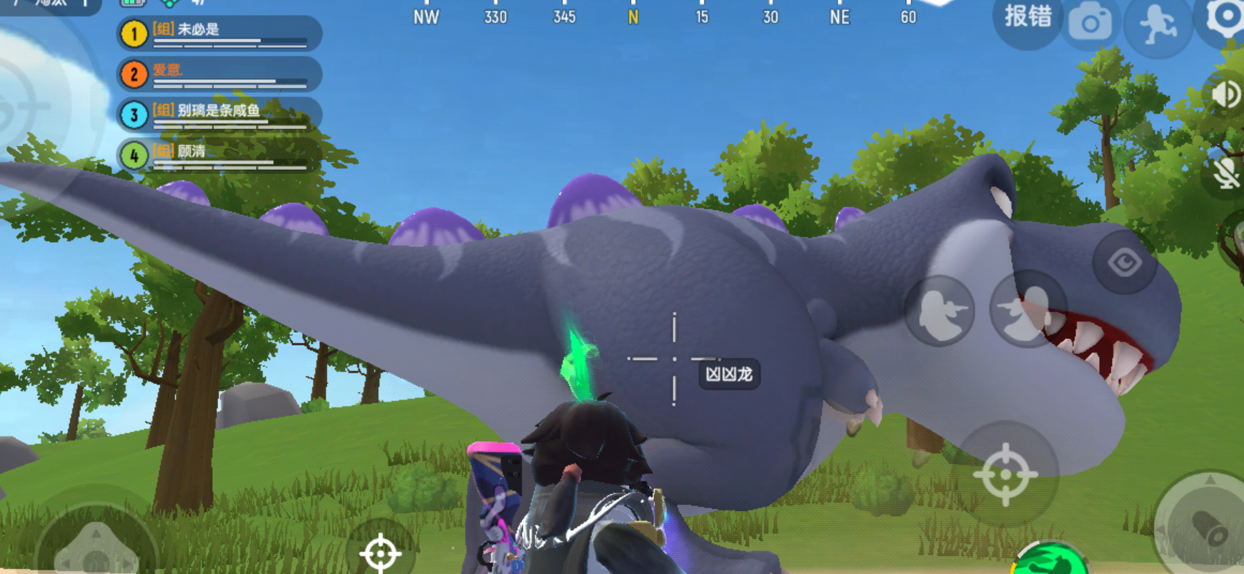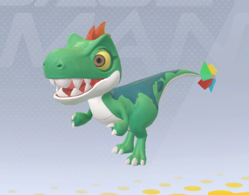 乍一看,是绿油油的小小迅猛龙,尾巴上还挂了个可爱的小风车,给人一种风驰电掣的感觉,而事实也是如此。奔奔龙,本赛季作为常规载具在地图中随机刷新,血量一般,移速快,可载2人,属多人载具。重点来了:奔奔龙有一个所有龙都没有的技能
