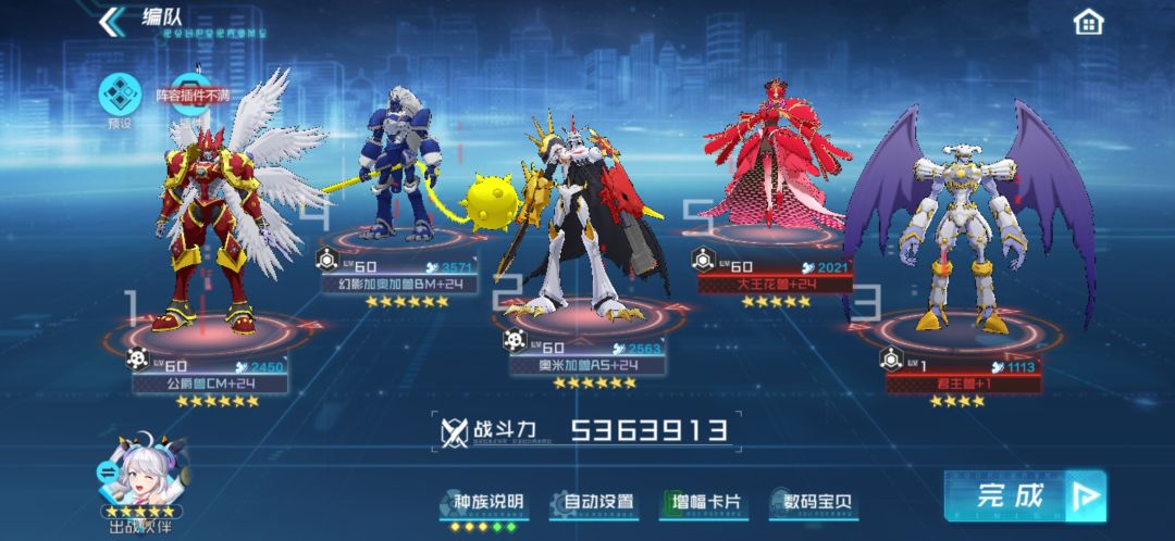 以2火的配置触发奥米茄AS的火拟态,被动光环提供大量伤害加成,红莲驱散护盾并且保护己方不被反击减员,奥米茄进化两动收尾。