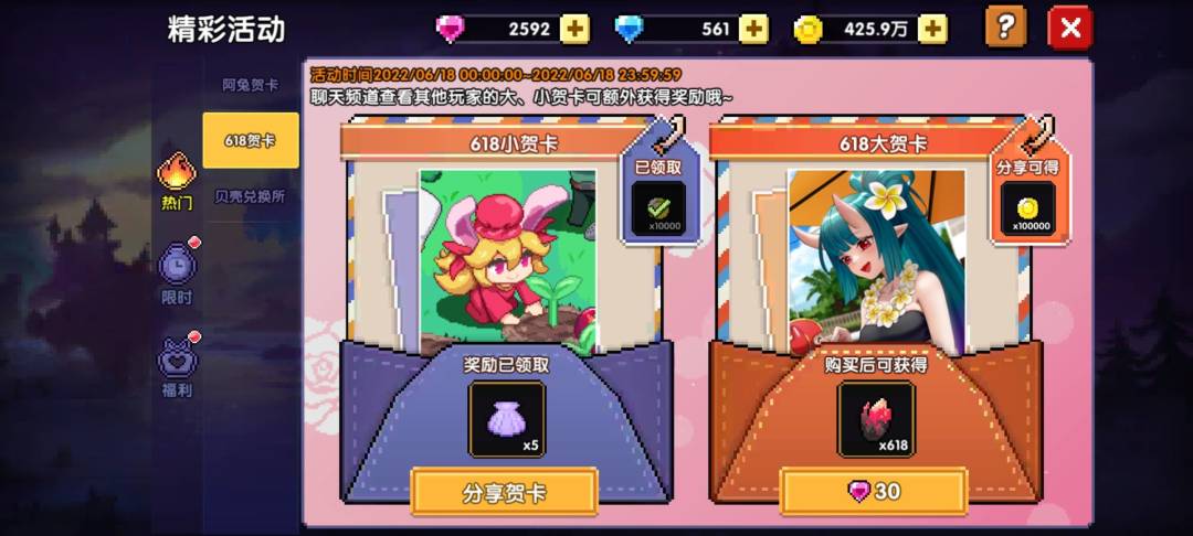 亲爱的勇者,618天降惊喜活动已上线,仅限618当日。