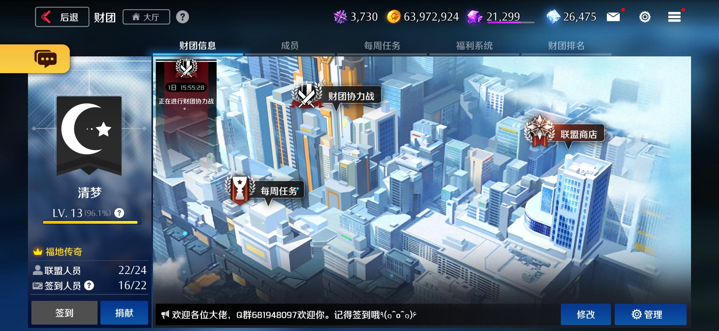 另外给自己的(准14级)财团招聘两名团员,有专属群,会战统一听指挥,轻松过7阶段,有意者加群,申请清梦即可👍👍👍