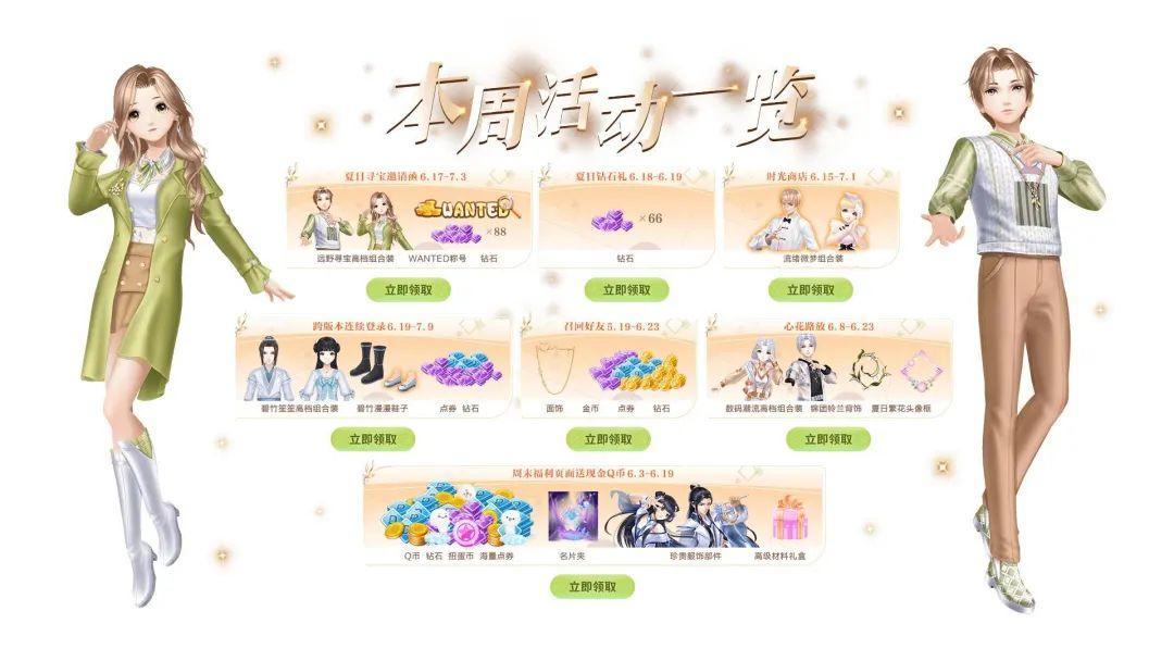 4.6月19日-7月9日参与跨版本连续登录得钻石,点券,服饰套装;