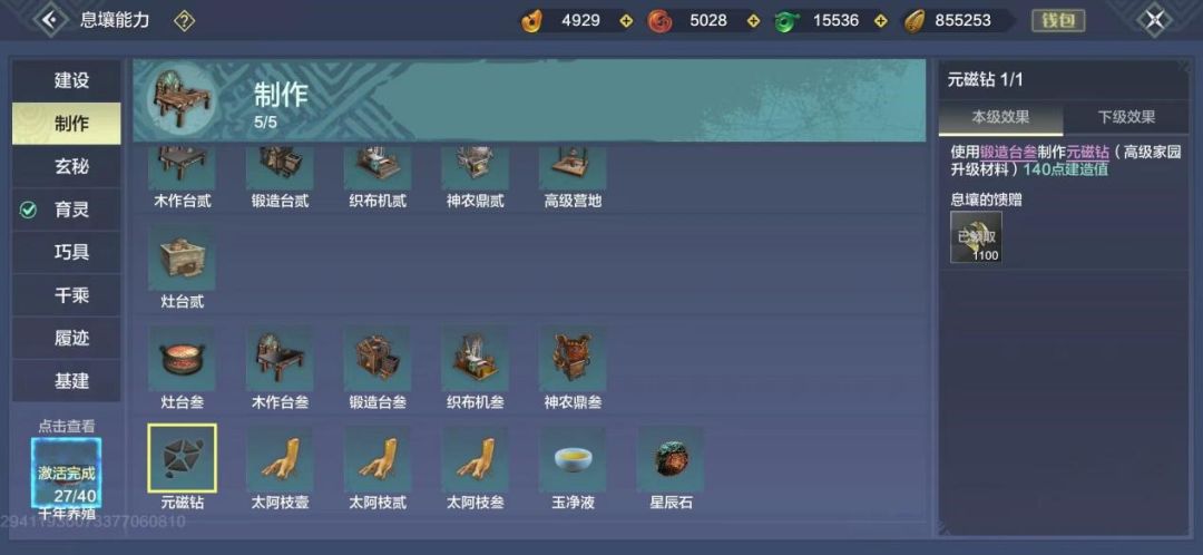 25级以后家园升级所需材料需要先在息壤-制作里面激活