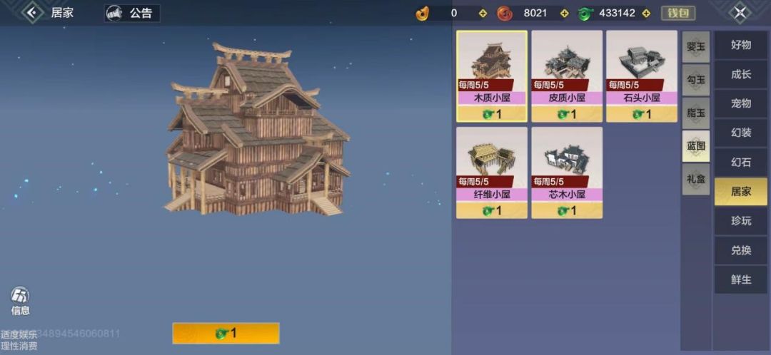 商店-居家-蓝图有售卖还挺好看的家园图纸,仅需1脂玉,1脂玉买了不吃亏,1脂玉买了不上当!