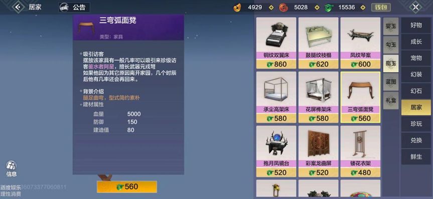 商店-居家-脂玉里有三弯弧面凳、铜纹双翼床等家具,可以吸引鉴水者阿星、鉴水者无名等侍从到家里。