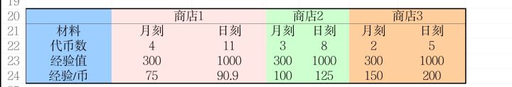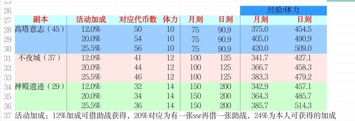 另外我现在作战演练的攻略才做到一半,但是目前能算出打绘卷本约摸是每点体力可获得390点经验,所以活动商店里的月刻兑换不值,甚至比打绘卷本还亏。