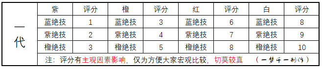 【补充】宠物品质分为“紫/橙/红/白/彩(一代没有)”、技能品质分为“蓝/紫/橙”(具体技能类型见奇兽技能讲解及基本合成规律的后半部分)