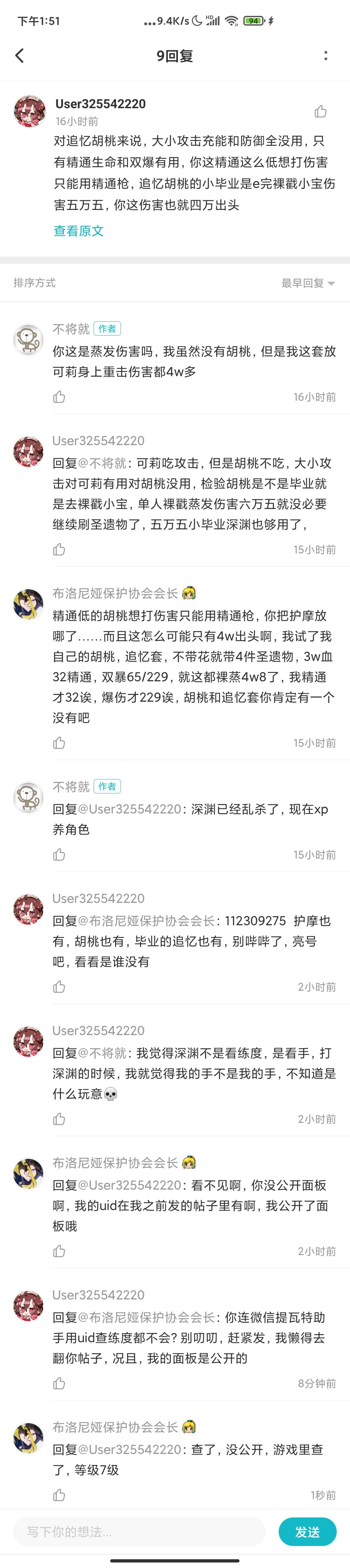 原帖是一套带护摩有300爆伤的追忆,我寻思怎么也不止4w吧,我就自己拉低了很多面板试了一下,结果这好大哥就急了,非要跟我PVP面板,也不知道发的uid是怎么回事