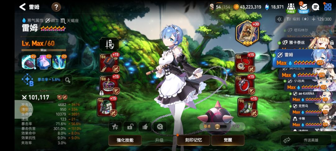 水扇一面能清掉小怪,这个面板踩暗水阵带饮料正好能秒掉然后速度180最好怕小怪乱速,替代很多水修女,水法都行但是面板更高。然后就是暗水200抗速度一速就行。拉斯夹攻,速度不要太快,替代其他夹攻手也行。蕾姆关技能,破甲之后,两次二连可以敲死。