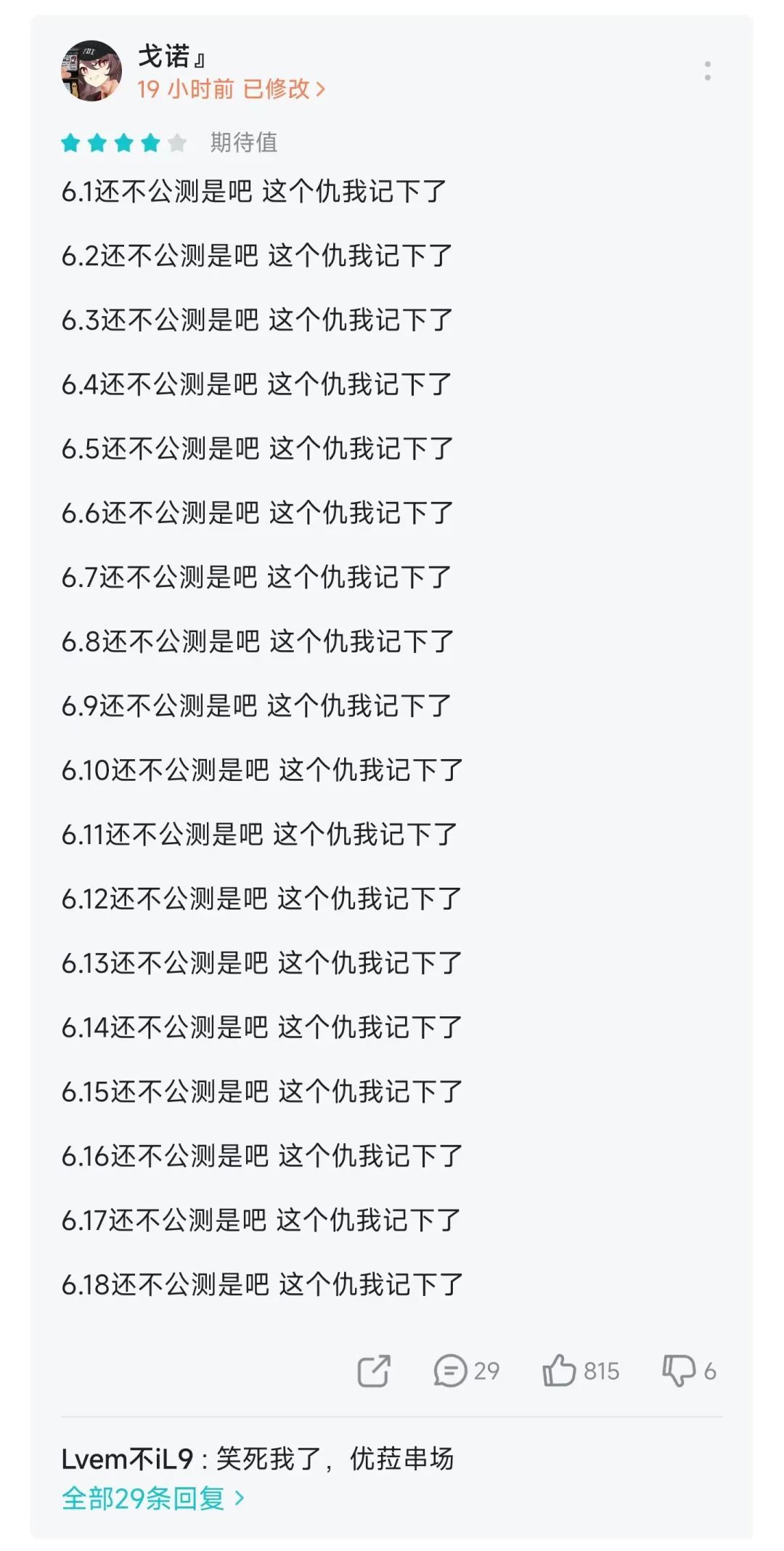 不知道这位玩家能坚持多久,现在玩家催上线是越来越卷了,希望游戏公司也要努力不辜负玩家的期望呀。