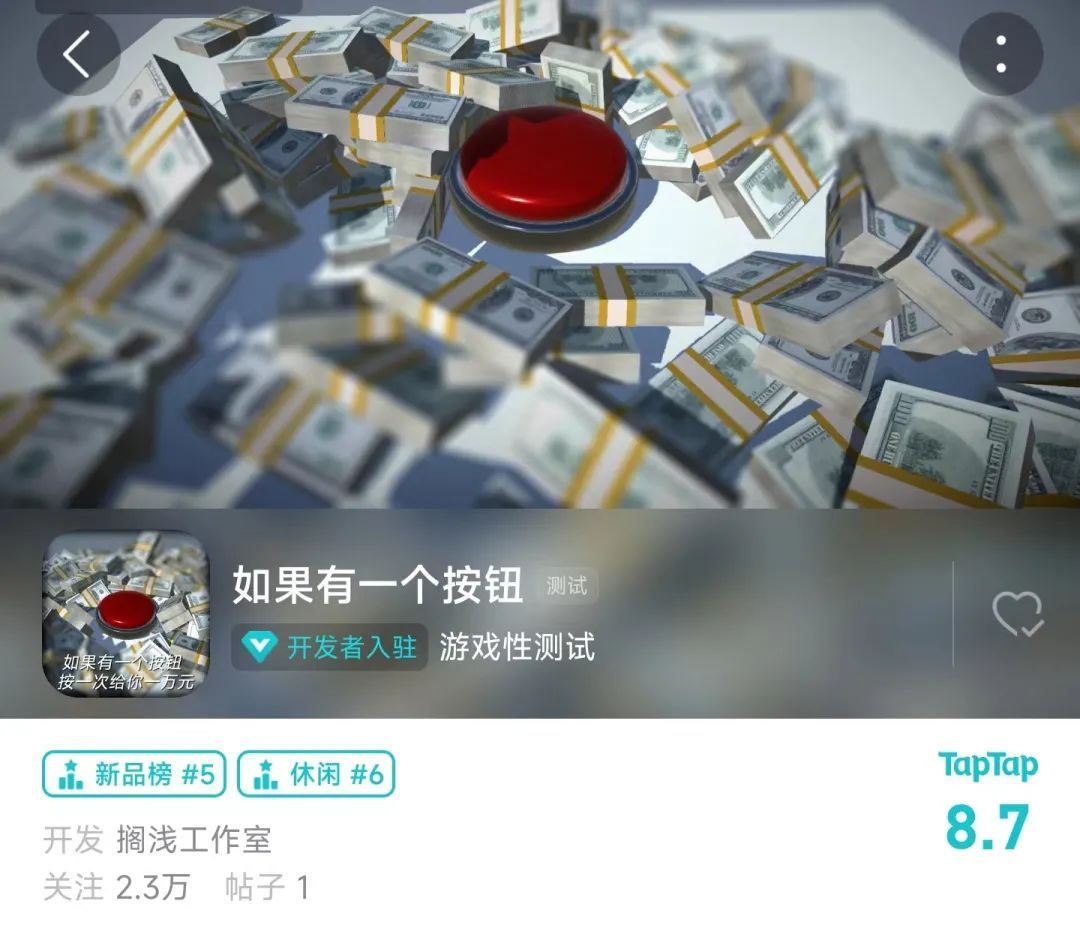 [TapTap 周观察] 有人真把按一次获得一万元的按钮做出来了