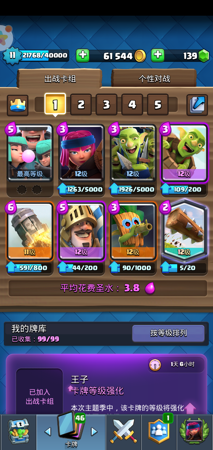 准备等下个赛季飞桶满级之后 向6000冲击 普通传奇史诗卡都挺好攒的 就是稀有卡难攒 滚木12级目前也够用