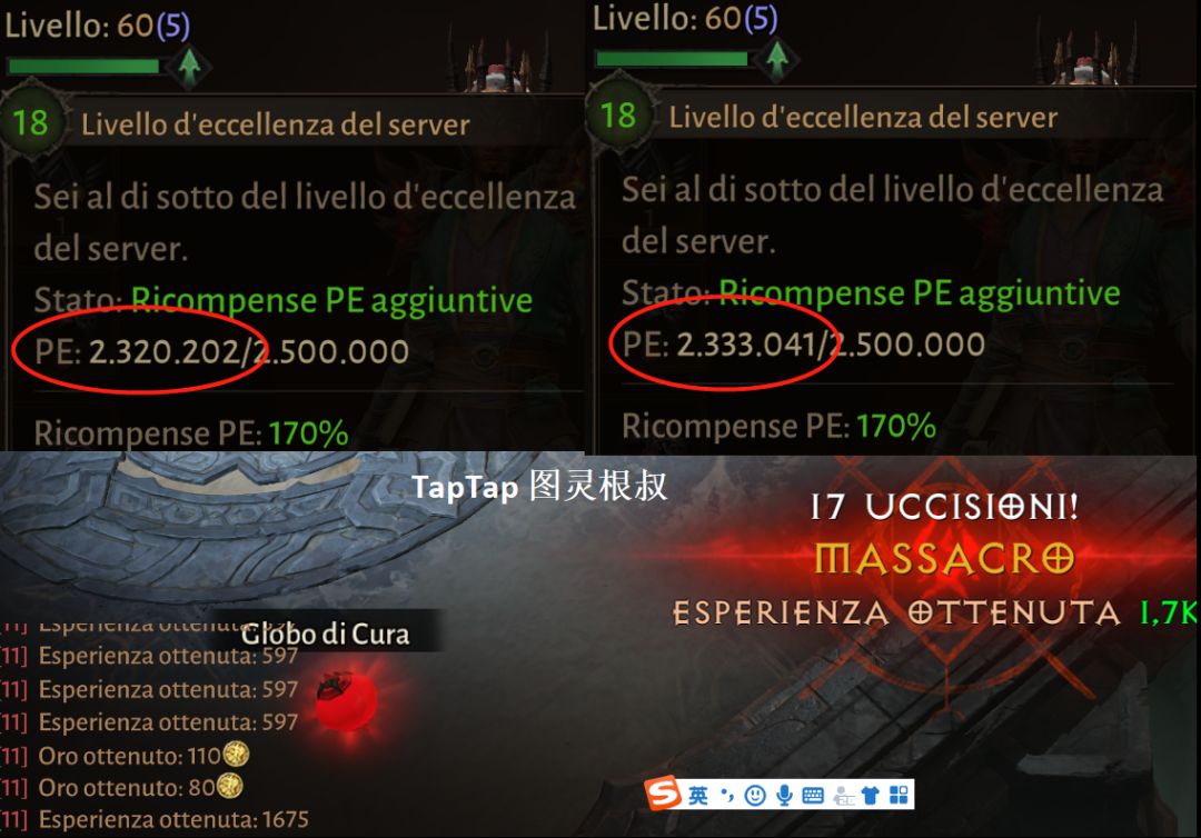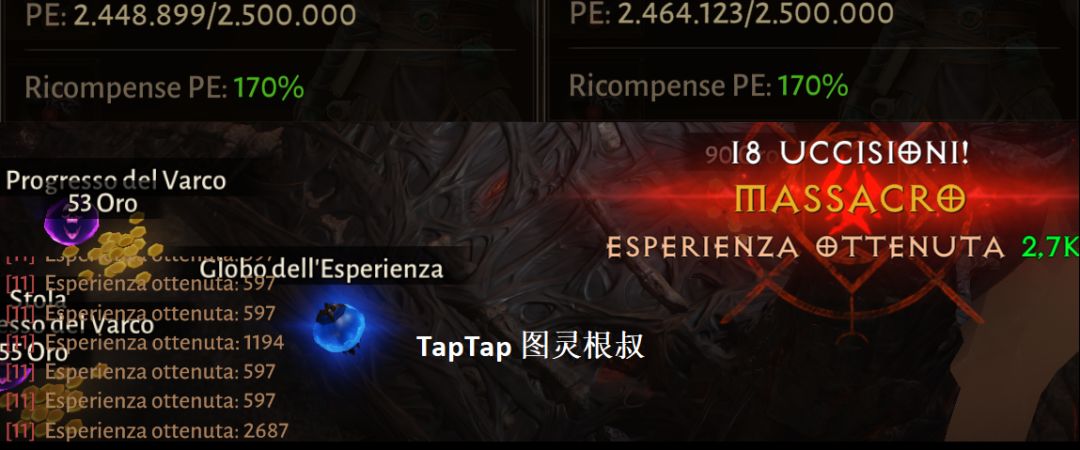 18只怪的经验为2464123-2448899-2687=12537,2687除以12537,结果为21.4%,说明精英怪提供的奖励倍率与普通怪不一样