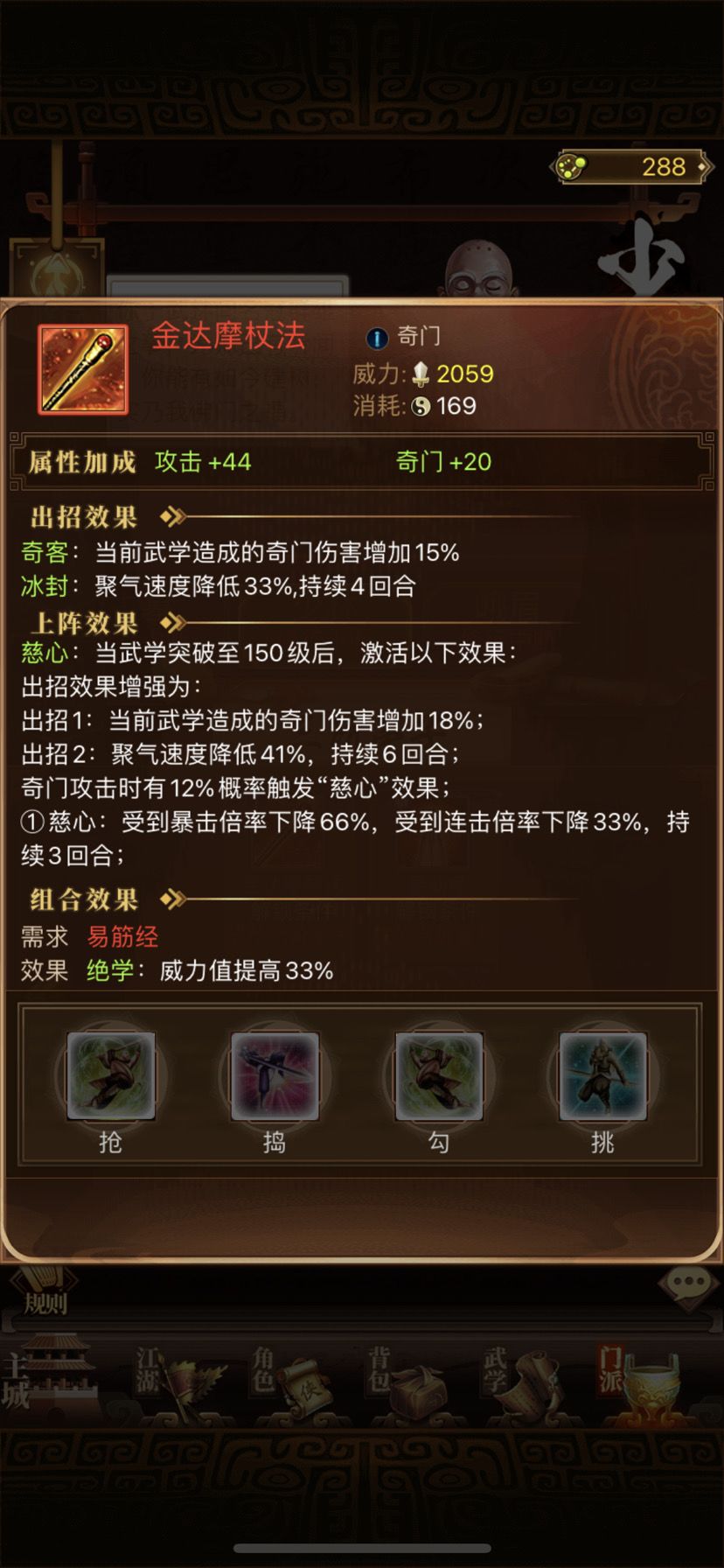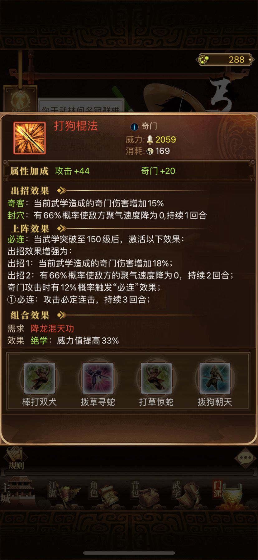 奇门武学影响连击最大,