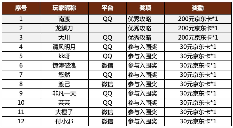 以上就是第八期攻略征集的全部获奖选手啦!获奖的杀友们请注意小师妹账号的添加申请消息,小师妹会在7个工作日内添加申请成为你的好友,并会亲自联系你进行派送奖励哒,千万不要错过噢~