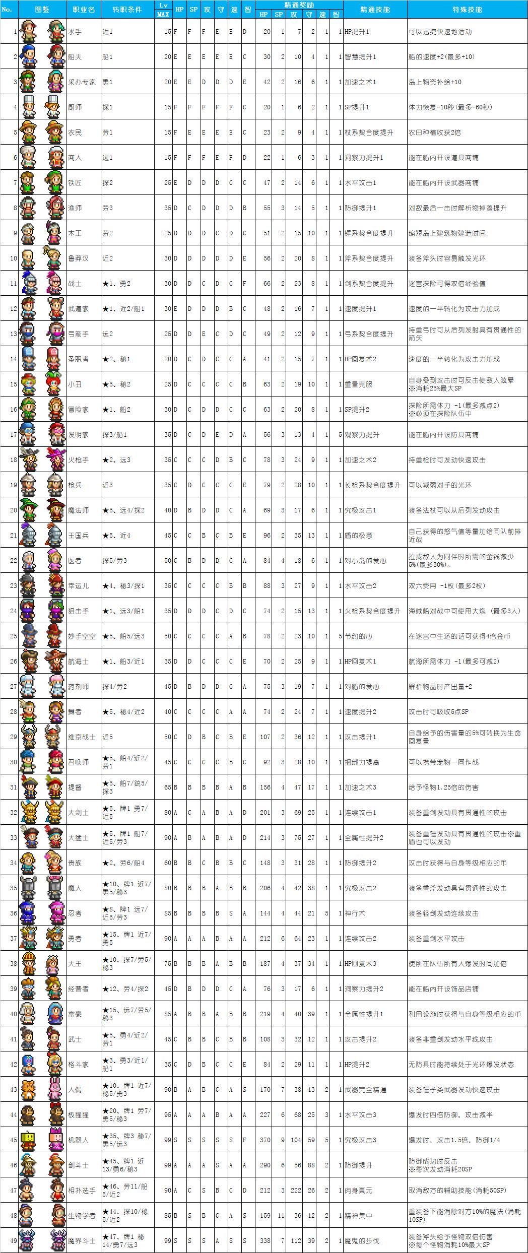 《大航海探险物语》职业名字、职业属性、转职条件、技能说明