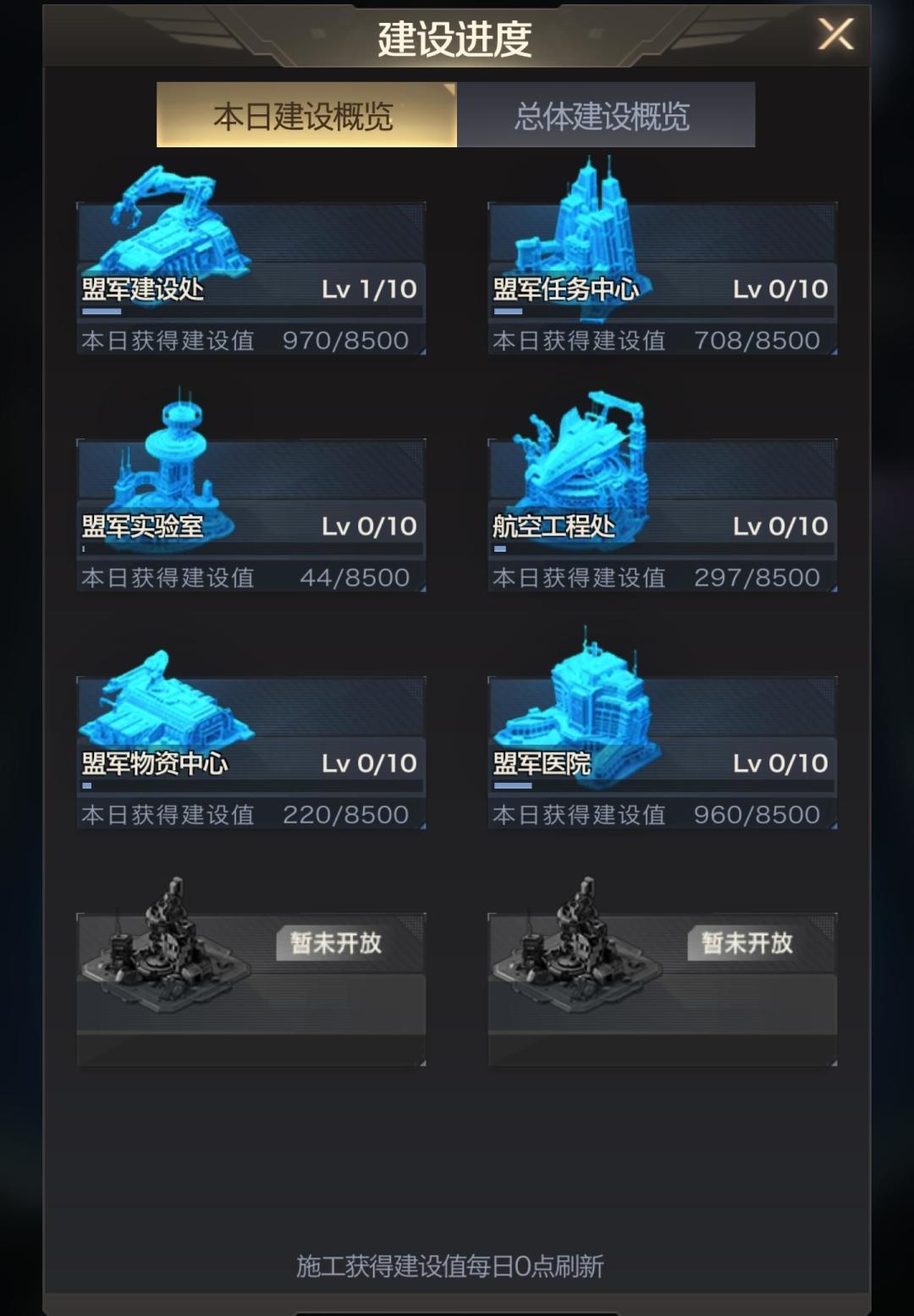 注意:施工获得建设值每日0点刷新