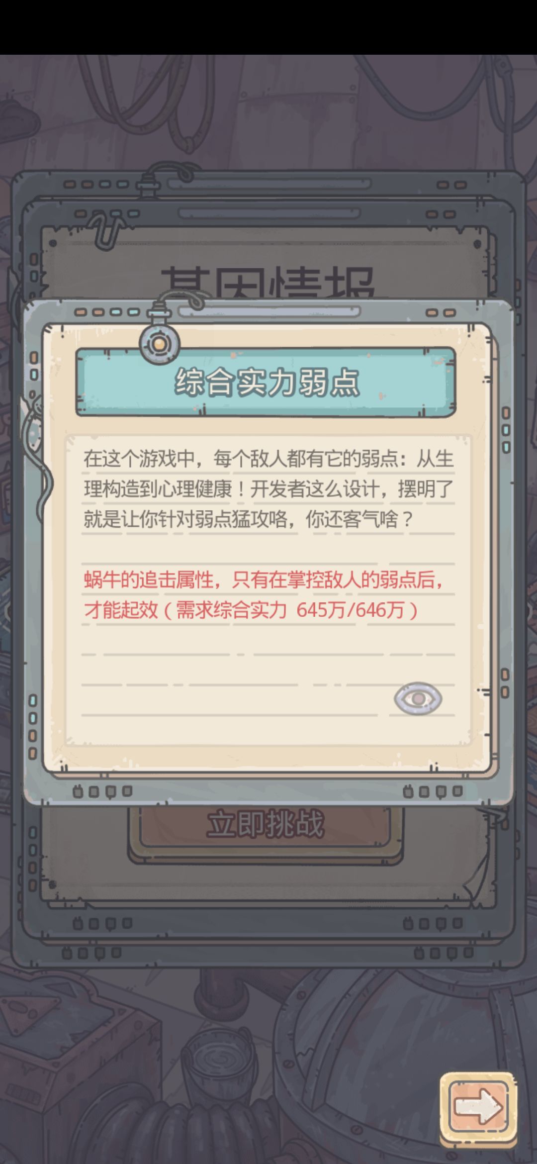 在二级页面可以看到怪物的数值,点击眼睛图标制霸所需战力。