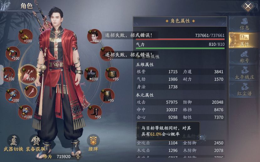红色双剑专属12%会心概率,实际增加的是12%会心值换算概率1.6%