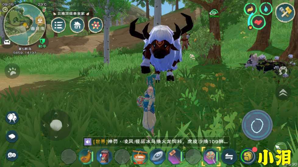 每次我们前往春日海岸对面小岛的河里捡蓝莲时,就会看见岸边有一只体型超大的大角牛,身上还有特别的纹身!没错,这就是本期攻略的对象~大角牛王!