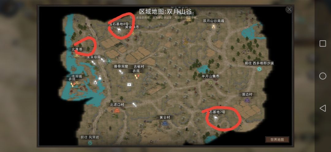很多人玩着玩着发现非常缺玉石,不知道去哪刷,我给你们标记(红圈标记)了各个地图刷玉石的地方,跑商的时候可以顺便把玉石拿了,大概一个月刷一次,这是我目前知道的,应该还有其他的,不过已经够用了。