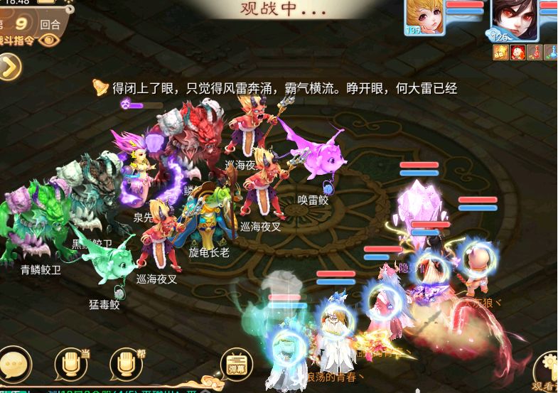 上图第九回合,男魔叫了个粉色隐身冰块,中间男魔补了个速,其他人照旧,治愈,单秒,混。