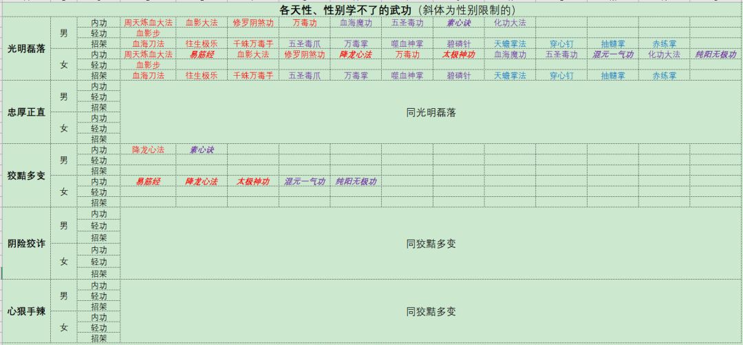 各天性、性别学不了的武功