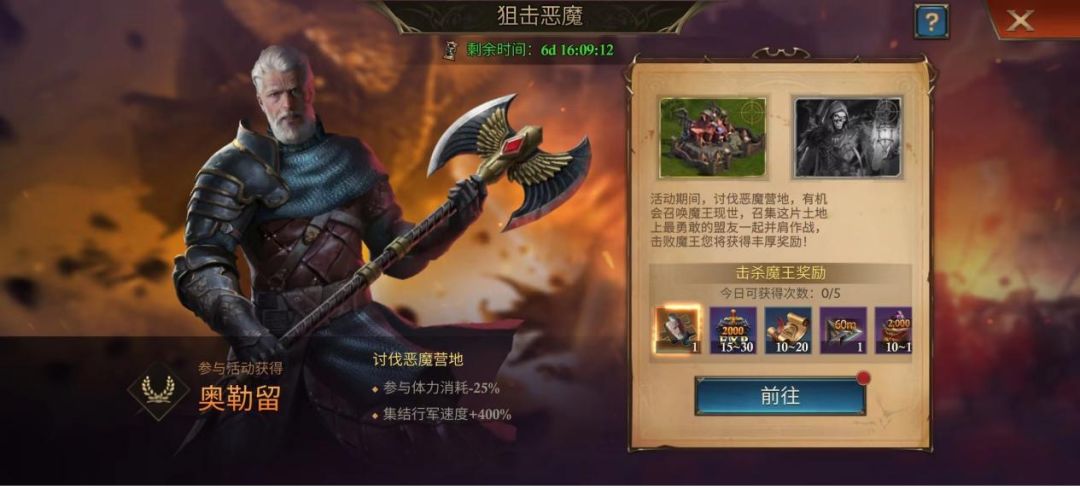 这里提一嘴传说英雄奥勒留如何获得,通过狙击恶魔活动能获得5个角色碎片,记得每天都要去打一下,中后期能与伊凡妮组成高效率采集队。