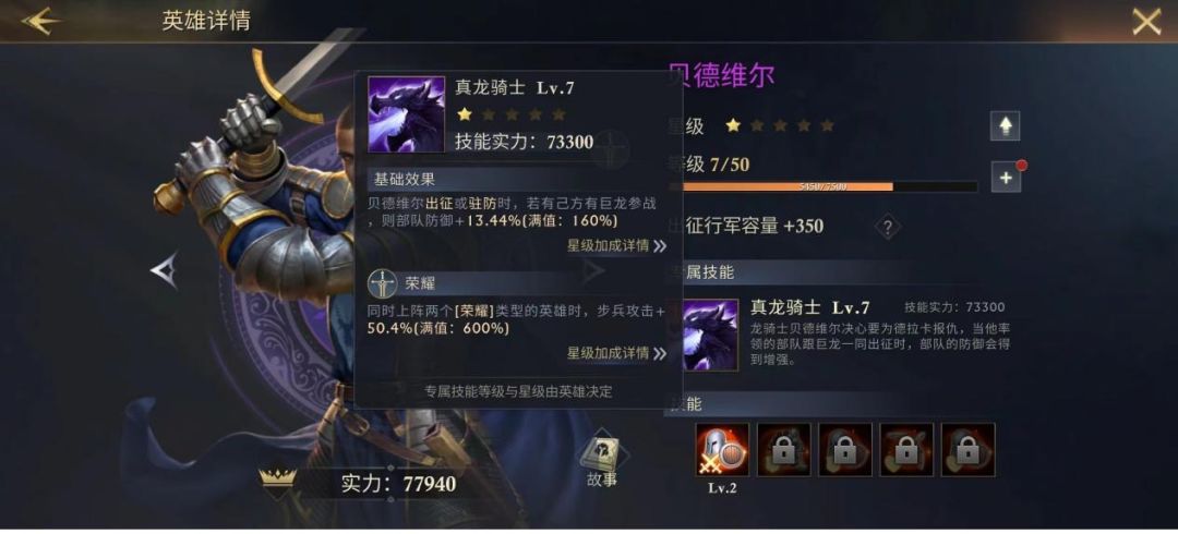 专属技能(真龙骑士)中的基础效果是有龙族参战的话提升整个队伍的防御,因为每一位领主前期都能获得自己的幼龙,所以这个属于必定生效的技能。