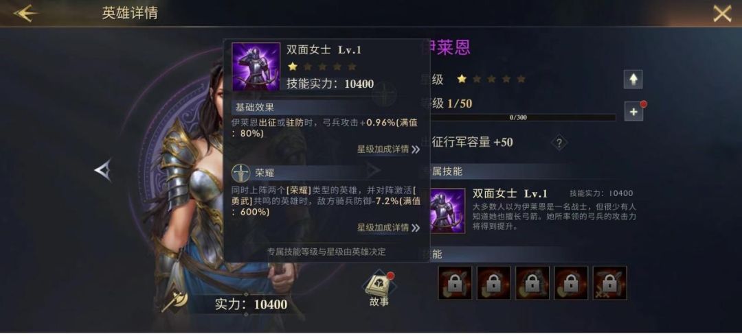 专属技能无论是基础效果还是共鸣效果都是提升基础攻击,属于骑兵队高攻击队伍挂件,就算抽到“自由”词条的传说英雄与其搭配,在开荒期的优先度依然比不上贝德维尔,所以没必要太早花费资源在他身上。