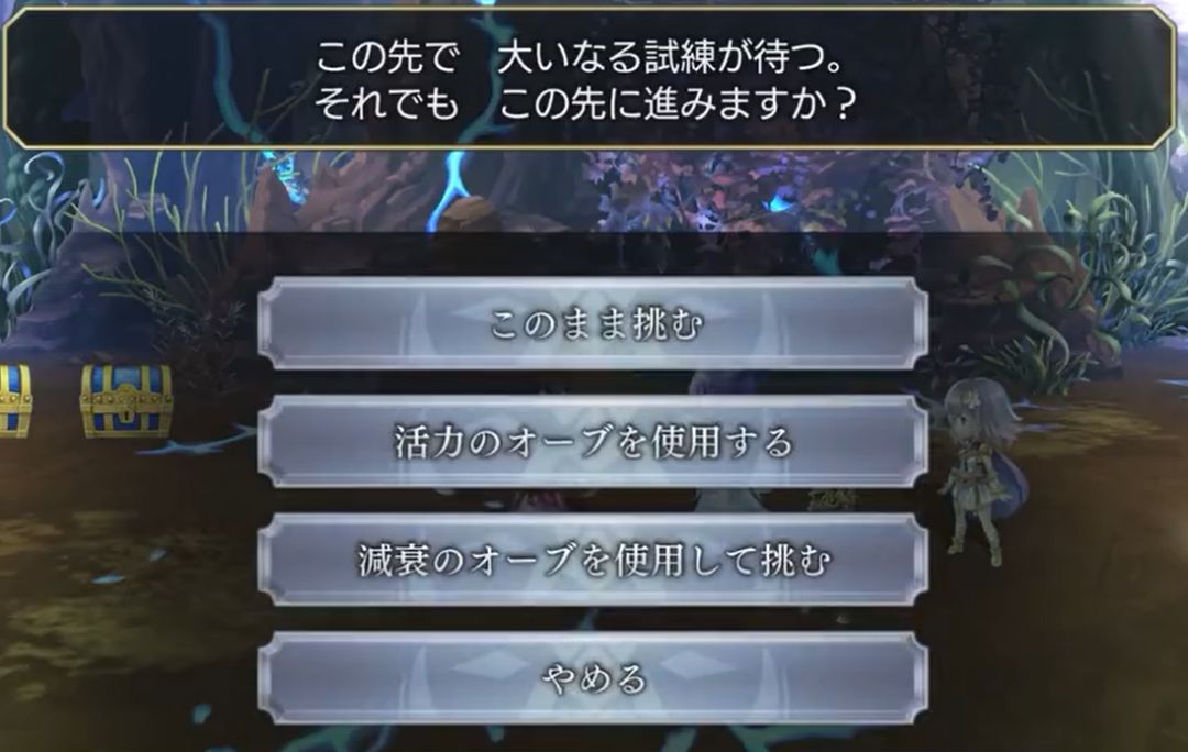 在时の大涡的此处可以进入进入迷宫,入场时需要你选择4名角色,角色会被分为5种类型:(魔攻型/攻击型/支援型/技巧型/防御型),进场角色的等级和成长状况会被重置,且角色固有的技能不能使用。