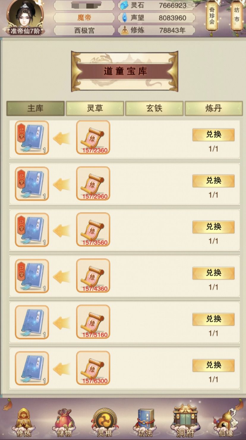 总结:大后期道童只有金和木两个,因饼太大需要追求圆满的,其他三系升太高没意义浪费材料,或者说鬼佬更新一下?类似炼体神通增加一批修为神通?(感觉不现实,毕竟神1到9都有了),其实矿应该也还有用,目前我个人感觉还没有到红蓝青黑石这种彻底食之无味、弃之可惜的地步,火是因材料问题,或许后面开发种子获取途径和灵田玩法,有望重新崛起,加快毕业进度,但水兑换完以后的确确实实是有待发开新的兑换品,不然怎么满足强迫症的圆满毕业呢?