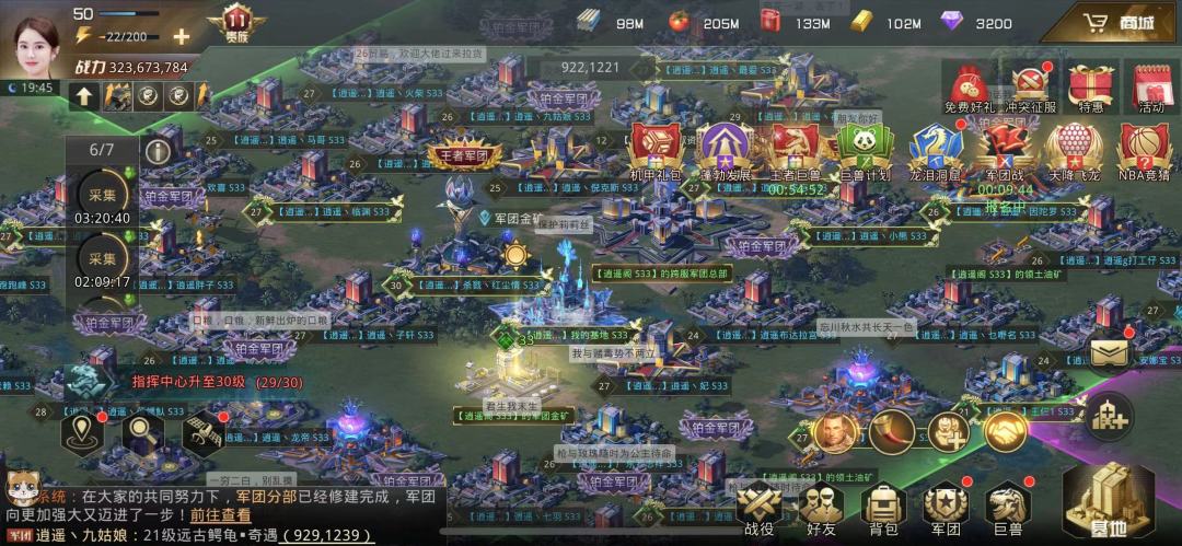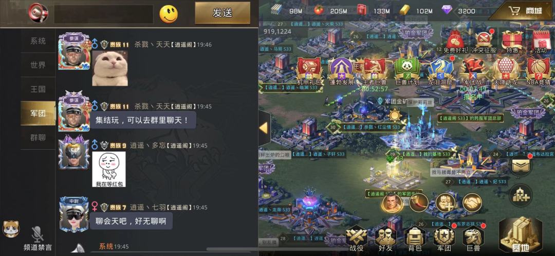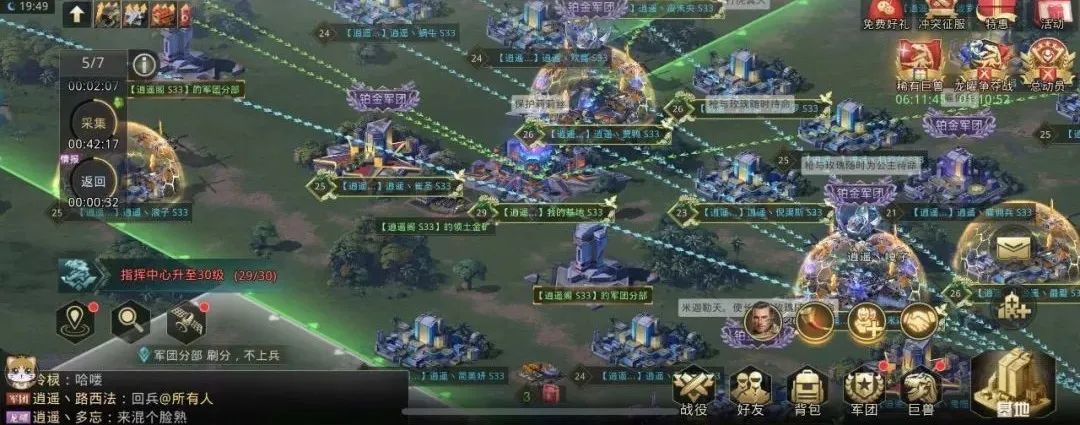 平时我只要有时间都会上线,与兄弟一起唠唠嗑,或者派遣军队去挖矿采集,或者去打兵团消耗体力,能做的活动还是比较多的