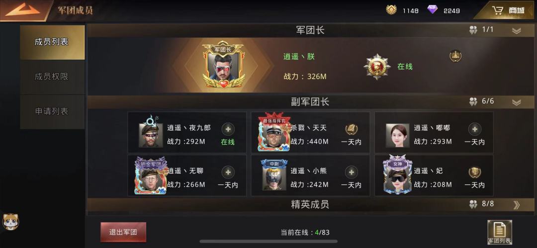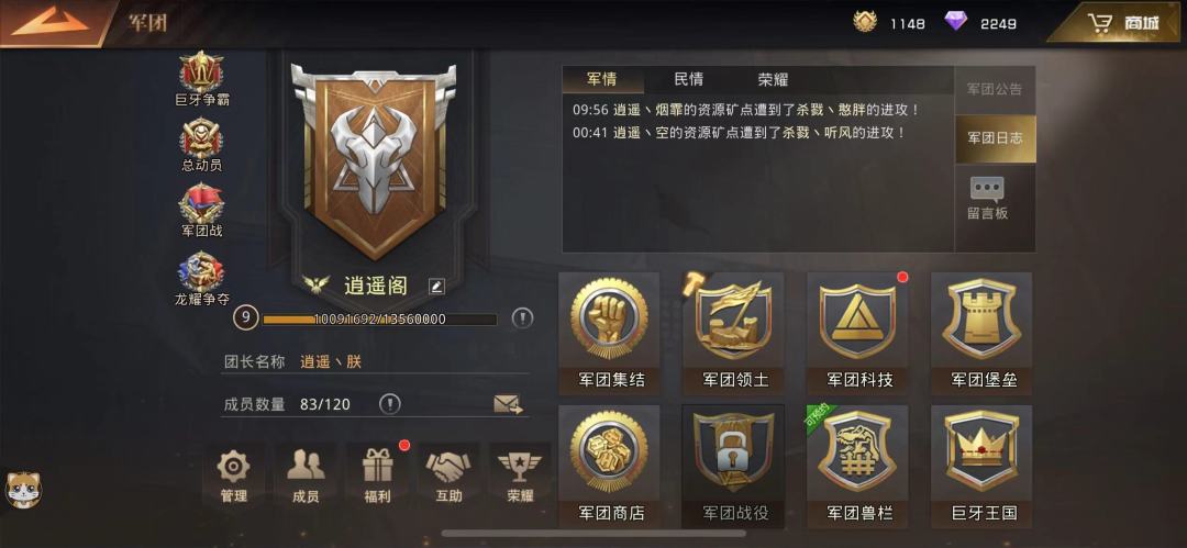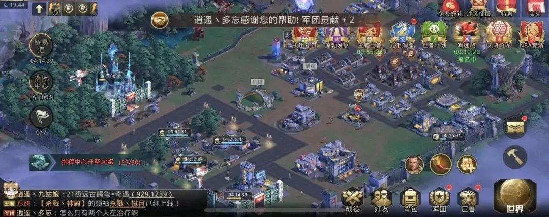 同时我会积极组织大家上线打兵团,狂兽,矿脉等,尽量让大家都分到资源,在遇到需要觉醒巨兽的兄弟时候,也会帮助他们做任务,有不会玩的兄弟在军团频道或者群里问的时候,也会教他们怎么玩少走弯路,怎么提战力更快。