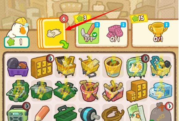 这里要注意的一点是:需要已经显示有产出但是没有空间产出的物品的旁边才可以,产出物是成卡片,有时候这样做可以用来省空间,等有空间的时候再给它合成就好啦!