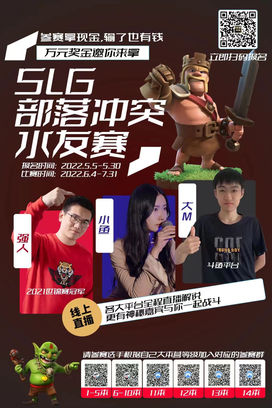 更加引人注目的是本次比赛我们有幸邀请到了小鱼、大M、强人等众多平台知名主播一起参与其中。