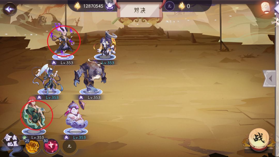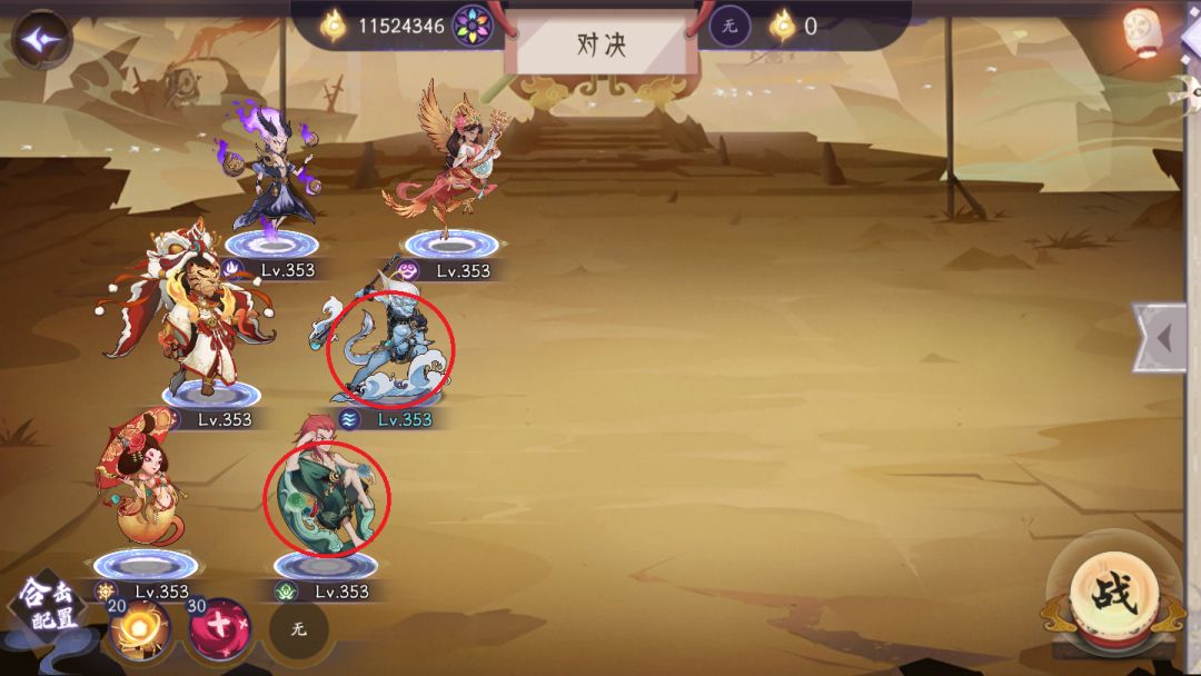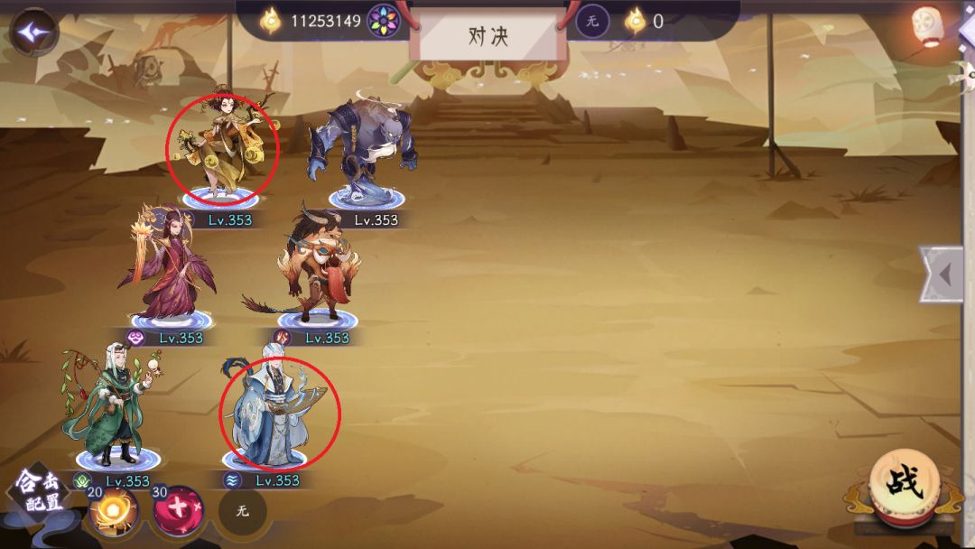 队伍3,核爆队(通常适用于关键灵妖缺失,2、3队搭配,以及一些特定关,来自橙黄大佬帖子,适用于32章前。)